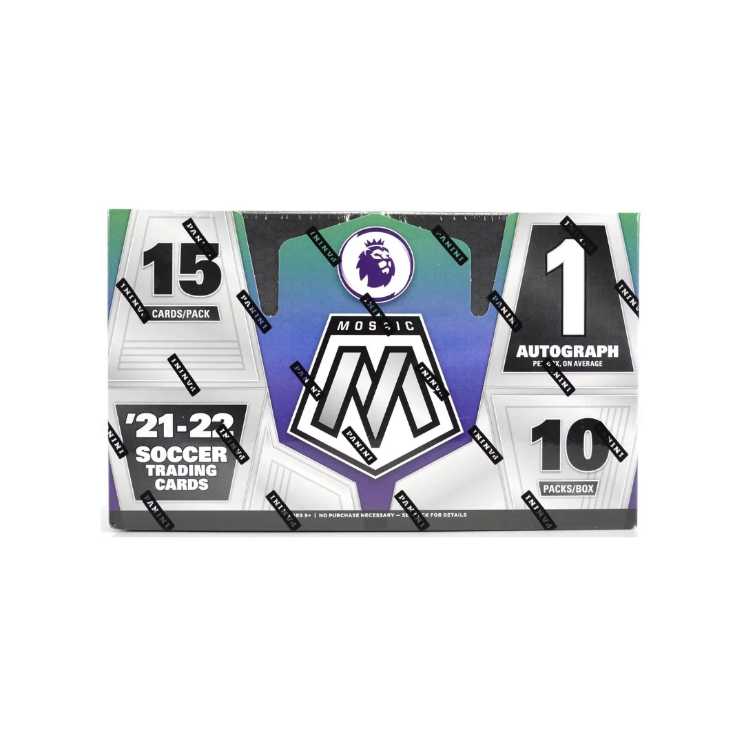 Collect a 200-card base set featuring players from all 20 Premier League clubs! Collect these Hobby-exclusive parallels: Mosaic Red, Mosaic Blue (#’d/99), Mosaic Purple (#’d/49), Mosaic Pink (#’d/25), Mosaic Gold (#’d/10), and Mosaic