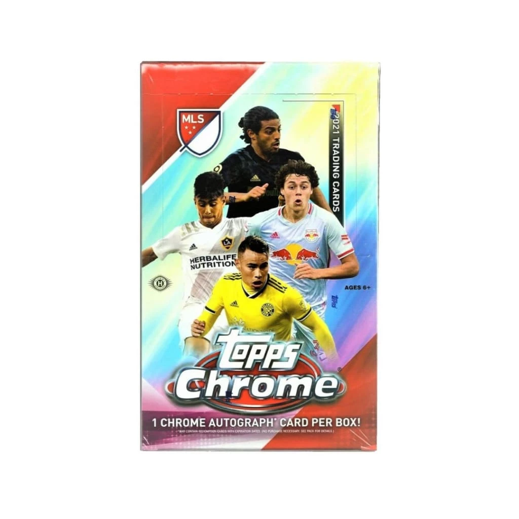 Each pack contains four (4) 2021 MLS Chrome base cards. Each box contains one (1) autograph card.