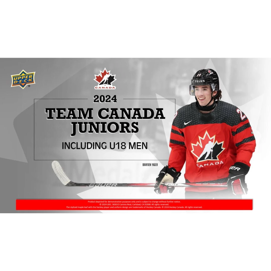 Each 2024 Upper Deck Team Canada Juniors Hockey Blaster Box contains 6 packs with 5 cards in each pack!